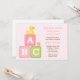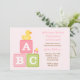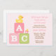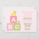 Cette jolie invitation au Baby shower comporte des cadeaux pour bébés roses et verts et un canard en caoutchouc dans un wagon. Cette invitation baby shower moderne et amusante est parfaite pour toute mère.