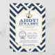 Ahoy ! C'est un garçon. Cute invitation au baby shower nautique avec grand motif en chevron et éléments de voile. Ancre et corde nautique. Bleu et jaune gras, faites une déclaration avec ce design!!
