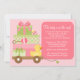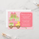 Cette jolie invitation au Baby shower comporte des cadeaux pour bébés roses et verts et un canard en caoutchouc dans un wagon. Cette invitation baby shower moderne et amusante est parfaite pour toute mère.