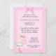 Mignonne cigogne tenant un paquet rose. Arrière - plan à points roses et arc rose. L'invitation parfait pour la petite fille pour maman d'être. Customisez avec vos détails de douche. délicieux doodles.