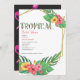 Exotic Tropical Invitations avec des lettres "tropicales" fleuries avec des palmiers exotiques et aquarelle motifs tropicaux sur le dos.