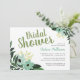 Conception moderne branchée d'invitation à la douche nuptiale avec une bordure tropicale fleurie audacieuse et écriture de calligraphie stylisée. Personnalisez le design avec les détails de votre douche nuptiale avec espace vide au dos pour ajouter des photos ou du texte supplémentaire. Utilisez les outils de conception pour customiser toutes les polices de texte et les couleurs afin de créer une conception unique d'une nature unique.