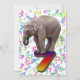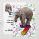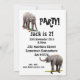 Une invitation amusante à la fête d'anniversaire pour le singe cheeky de votre famille. Un bébé éléphant debout sur un nombre, avec beaucoup de nombres tombant dans l'arrière - plan. Le dos a des éléphants sur les skateboards.