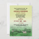 Sur l'invitation de la fête d'anniversaire de ferme avec une scène de terres agricoles. Il y a une vache et un cheval dans le pâturage. Réunissez tous vos amis pour une journée de plaisir et de fête à la ferme. Parfait pour les fêtes d'adultes ou d'enfants. Customisez avec les détails de votre fête.