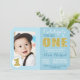 Célébrez le gros avec cette invitation photo d'anniversaire mignonne, bleue et or, fille ou garçon. Coeur de coeur dans le détail. Conception facile à customiser, ajoutez la photo de votre petit et votre texte personnalisé.