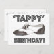 La conception présente une illustration originale au marqueur d'une chaussure de danse à claquettes de style oxford noir et blanc, avec JOYEUX ANNIVERSAIRE dans une police amusante. Il suffit de personnaliser pour une invitation de fête d'anniversaire sur le thème de la danse amusante.