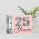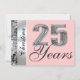 Ajouté à cette belle invitation, un modèle pour ajouter facilement n'importe quel nom ou noms sur le devant de la carte. Voici une invitation élégante, formelle et chic avec un grand graphique "25" argenté en 3D avec le texte "Years" en grande écriture formelle sur le devant. Personnalisez facilement le beau texte en écriture assorti au verso avec le nom, la date et d'autres informations. De superbes invitations de fête "Save The Date" pour les 25 ans ou peut-être un anniversaire de mariage argenté pour ce couple spécial. Un beau cadre de bordure argentée sur le devant et le verso de l'invitation avec un fond rose clair, ou facilement changer pour une couleur différente, ajoute à cette invitation chic. Ajoutés à ce design, des bordures étincelantes argentées (imprimées) sur les deux côtés de cette invitation chic. Riche et élégant, et pourtant