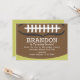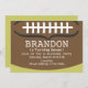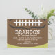 Une invitation à la fête d'anniversaire sur le thème du football avec une illustration grandeur nature d'un football couvrant la majeure partie de la surface de l'invitation. Arrière - plan en bas et à l'envers est vert, mais peut être customisé. Le texte est blanc.