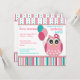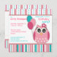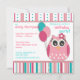 Regarde qui tourne ????? Vous customisez l'âge dans ce design amusant et coloré avec des pois ludiques et des rayures avec un joli hibou rose. Avec une mignonne fleur sur la tête et un bouquet de ballons à ses côtés, elle est prête à célébrer ce merveilleux anniversaire !