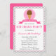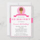 Voici le Scoop ! Invitation à la fête d'anniversaire de la Crème de glace rose et grise avec arrière - plan motif chevron.