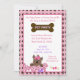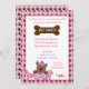 Célébrez l'anniversaire de votre chien avec une fête d'animaux de compagnie. Cette mignonne invitation a un chiot avec un arc rose et le mot woof. Invitation tous les compagnons de jeu et amis de votre chiot. Ajoutez les détails de votre fête pour l'invitation parfaite d'anniversaire. L'os Brown a les mots Pet Party.