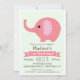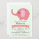 Bébé éléphant rose avec oreille pois, jungle, animaux de zoo, safari thème fille invitation fête d'anniversaire. Personnalisez ce mignon et rétro se sentir invitation avec le nom de votre enfant. Joli, simple, design sobre. Parfait pour les premiers, 1er, anniversaire, tout-petits, jeunes enfants ou plus âgés. Les couleurs sont rose pastel et marron.