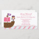 Cet invitation de carte photo d'anniversaire aux filles douces a un thème de pirate rose et violet! Il y a un pirate aux cheveux bruns qui navigue sur son bateau de pirates debout à côté d'un perroquet sur le côté gauche. En bas, un motif à rayures tendance rose, blanc, taupe et aqua. À droite, vous pouvez facilement customiser vos informations de fête. Quelques éléments de design par STOCKBERRY STUDIO