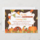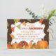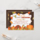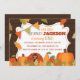 Embrassez les anniversaires de novembre avec cette adorable invitation à l'anniversaire de la Petite Turquie ! Comprend de mignons feuilles, citrouilles et dindes de couleur automne sur un arrière - plan de texture en bois.