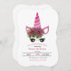 Une invitation amusante à la fête d'anniversaire avec une licorne rose. <br/>() La carte est facile à customiser avec votre libellé, police, couleur de police et choix de six types de papier.<br/>() Pas exactement ce que vous cherchez? Tous nos produits peuvent être conçus sur mesure pour répondre à vos besoins sans frais supplémentaires.<br/>() Communiquez simplement avec nous à askcottonlamb@gmail.com<br/>() Coordonner les produits disponibles :