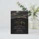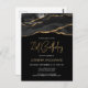 Cette élégante invitation d'anniversaire des 21 ans présente une image aquarelle d'une géode d'agate noire avec des reflets de faux or. Les mots "21st Birthday" apparaissent en faux or scintillant dans une police d'écriture manuscrite moderne décorative. Personnalisez-la avec le nom de l'invité d'honneur en texte couleur or et les détails en blanc.