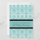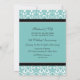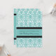 Carte d'invitation de fête d'anniversaire de mariage de 25 ans en élégant damas floral moderne bleu turquoise, noir et blanc, délicate et contemporaine. Personnalisable avec les détails de votre fête.