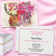 Cette invitation à la fête d'anniversaire "55 ans et fabuleuse" présente une éclaboussure rose avec un vélo à aquarelle et un panier sur le guidon appuyé contre un tonneau sur la couverture. Tous les détails de la fête sont à l'intérieur. Remplissez les champs de texte du modèle sous personnaliser avec vos informations.