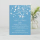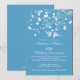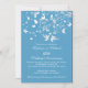 Belle invitation d'anniversaire de mariage d'oiseaux d'amour élégants et modernes avec un couple d'oiseaux d'amour sur une branche d'arbre ornée de papillons et de cœurs sur un fond rayé bleu turquoise. Parfait pour une célébration d'anniversaire de mariage de 25, 30, 40, 45, 50 ou 60 ans. Disponible dans notre boutique dans un grand choix de couleurs modernes et chic.