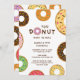Invitation à la fête d'anniversaire de Donut avec de délicieuses illustrations de beignets colorés parfaites pour les fêtes d'enfants et pour ceux d'entre nous qui aiment les beignets !