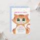 Invitation à la fête d'anniversaire du chat roux 5 ans. Tout le texte est prêt à être personnalisé pour n'importe quel âge d'enfant.