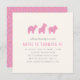 Cette invitation fantaisiste comporte un trio de biscuits d'animaux sucrés en forme de chameau, girafe et lion. Chaque biscuit est décoré de givre rose vif et de quelques arcs-en-ciel. Sous l'illustration ludique se trouve le dicton "appelant tous les animaux de la fête", suivi des détails du rassemblement. Au verso de la carte, il y a un simple motif à arcs-en-ciel avec le même arrière - plan rose vif. Ce design était destiné à une fête d'anniversaire d'enfant, mais je pense qu'il serait parfait pour un baby shower aussi.