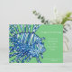 Invitation à la fête d'anniversaire personnalisable de l'enfant avec l'oeuvre originale d'un poisson de lion géant aux couleurs vert kelly, marine et blanc.
