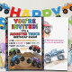 Un thème d'anniversaire cool avec des monstres trucks ! Vous pouvez personnaliser cette invitation avec vos propres détails.