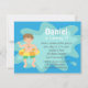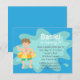 Vous organisez une fête pour des enfants qui ont leur anniversaire en été ? Un thème de fête coloré autour de la piscine est parfait pour se rafraîchir et s'amuser. Épatez vos invités avec cette invitation d'anniversaire bleu frais représentant un garçon mignon portant un short de bain vert et un collier de coquillages autour du cou. Il s'accroche à une bouée orange et jaune et se prépare à faire des éclaboussures ! Parfait pour quiconque a une piscine dans son jardin ou une piscine gonflable, ou pour organiser l'événement dans un parc aquatique. Personnalisez facilement avec les détails de votre fête.