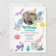 Invitation fête d'anniversaire avec motifs d'Halloween illustrés. Vous pouvez le customiser avec la photo préférée de votre bébé et vous pouvez modifier tout le texte qui sort. Sur le dos une affiche avec des fantômes amusants volant. (Photo de Alvin Mahmudov d'Unsplash).