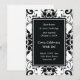 Invitation à la réception de mariage après mariage avec un design damassé noir et blanc. Si vous êtes déjà mariés et organisez la célébration de mariage plus tard, personnalisez cette invitation pour votre événement. Sert également d'annonce de mariage si vous avez eu une petite cérémonie privée ou un mariage de destination et que vous voulez informer les gens. Texte entièrement modifiable, ajoutez vos propres informations.