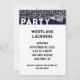 Invitations de fête créatives sur le thème de la crosse à personnaliser facilement pour joueur de crosse, entraîneur ou équipe bleu marine pour la soirée des seniors ou célébration d'événement sportif.