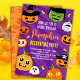 Créez vos propres invitations de fête de décoration de citrouille d'Halloween.