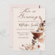 Célébrez la future mariée avec cette charmante invitation de baby shower "Love is Brewing", parfaite pour les amateurs de café et les rassemblements élégants autour de cocktails. Avec un verre à cocktail magnifiquement illustré et un martini espresso crémeux, ce design allie chaleur, romance et une touche de sophistication. La palette de couleurs douces inspirées du latte et la typographie script délicate créent une atmosphère accueillante pour votre célébration. Idéale pour un baby shower de style café, une fête au bar à café, ou un brunch avec des mimosas et des cocktails espresso, cette invitation est entièrement personnalisable avec les détails de votre événement. Que vous organisiez l'événement dans un café, chez vous ou dans un lieu chic pour un brunch, cette invitation donne le ton pour l'amour, les rires et les souvenirs fraîchement créés.