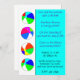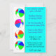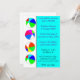 C'est une invitation à la baignade ou à la fête de plage. Quatre boules de plage bordent le côté gauche tandis que le côté droit est bleu avec les informations sur la fête. Tout le texte est personnalisable, même le poème original inclus sur l'invitation.