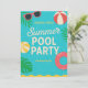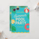 Faites un peu de plaisir avec cette invitation Summer Pool Party, avec des tons bleu aqua, corail et jaune lumineux avec des illustrations tropicales amusantes comme des feuilles de palmiers, des flotteurs de piscine et des ondulations d'eau. Idéal pour les rassemblements d'été, les événements de plage ou les fêtes de jardin-piscine. Prêt à imprimer et entièrement personnalisable pour Zazzle et d'autres plates-formes d'invitation.