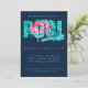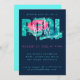 Jeter une fête de piscine tropicale et à la recherche d'une invitation appropriée? Ne cherchez plus ! Ce design moderne, cool et tendance présente des textes d'art avec une piscine bleu verdâtre, un flotteur rose chaud et une typographie moderne avec éclaboussures d'eau sur un arrière - plan bleu minuit est parfait pour votre fête de piscine. Ajoutez simplement les détails de votre fête sur la carte et préparez-vous à la fête !