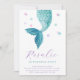 Invitation d'anniversaire de la queue de sirène sous la mer. L'invitation présente une queue de sirène à l'aquarelle dans des tons turquoise. Modifiez tout le texte pour qu'il convienne à votre événement.