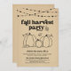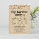 Invitation à la fête de la récolte d'automne - Illustrations dessinées à la main sur un fond kraft rustique merveilleux.
