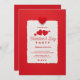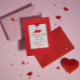 Invitation à la fête de la Saint-Valentin personnalisable avec un cœur rouge 3D sur fond rouge et blanc.
