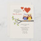 Une invitation décontractée à la fête d'anniversaire, parfaite pour toute saison. Il présente un joli couple de chouettes sur une branche avec le coeur au-dessus d'eux. (FP)