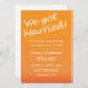 Invitation à une réception de mariage après la cérémonie avec "Nous sommes mariés !" et votre texte personnalisé sur fond orange mélange. Si vous êtes déjà mariés et que vous organisez une célébration de mariage plus tard, personnalisez cette invitation décontractée pour votre événement.