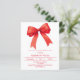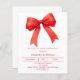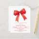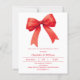 Pour une fête de Noël en famille et entre amis. Une carte simple et élégante décorée d'un grand arc rouge. Fond blanc. Personnalisez et ajoutez les détails. 1 feuille = 1 invite imprimé bord à bord.