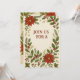 Célébrez les fêtes avec cette élégante invitation à la fête de Noël à deux côtés. Doté d'un arrière - plan parchemin crème orné de poinsettias rouges festives, de saintes sprigs à feuillage persistant et d'accents dorés, l'avant met en valeur les détails de votre événement tandis que le dos décoratif assorti complète le design. Idéal pour les fêtes de Noël, les rassemblements saisonniers et les fêtes d'hiver.