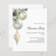 Pour une fête de Noël en famille et entre amis. Un arrière - plan blanc élégant et moderne. Décoré de billes d'or et de blanc, de verdure et d'un cône de pin. Personnalisez et ajoutez les détails. 1 feuille = 1 invite imprimé bord à bord.