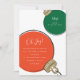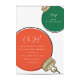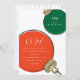 Illustration moderne d'un ornement de Noël rouge et vert de style rétro avec les mots "Oh Joy" en écriture blanche et typographie contemporaine. Ces invitations sont parfaits pour les fêtes d'échange de décorations de Noël.