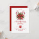 Invitation vos invités à une fête de Noël festive avec notre invitation de fête! Doté de notre charmant sucre de canne de Noël orné de verdure de vacances et d'une cravate rouge. Customisez votre invitation avec une typographie rouge vibrante pour rendre votre célébration spéciale. Nous sommes impatients de célébrer avec vous le plus beau moment de l'année !