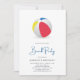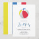 Invitation à une fête sur la plage avec un ballon de plage coloré, parfaite pour les fêtes d'été.