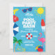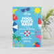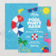 Aloha, c'est une fête de piscine - personnalisez pour n'importe quel âge anniversaire ou fête de piscine ! Invitation d'anniversaire Luau parfaite pour votre fête d'anniversaire estivale au bord de la piscine ou avec un toboggan aquatique gonflable. Le design présente un fond d'eau avec des lunettes de soleil, un soleil, un parasol, une glace, un ballon de plage, un palmier, un flamant rose et une fleur d'hibiscus.