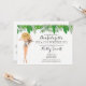 L'invitation à la fête de la plage de la bachelorette tropicale présente une fille en maillot de bain et des fleurs tropicales. Détails de l'événement au verso de l'invitation. Peut être customisé pour tout événement.